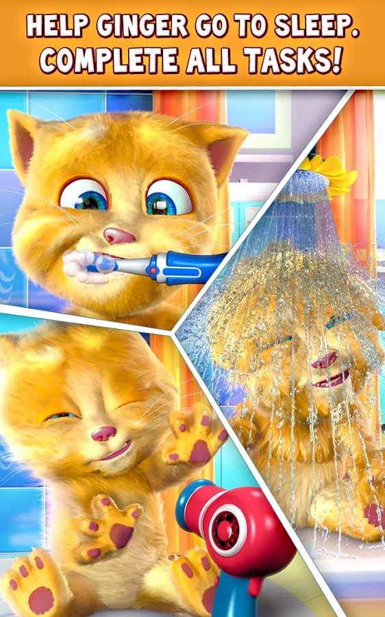 Little Talking Ginger needs your help! Help him get ready for bed and have fun along the way!
